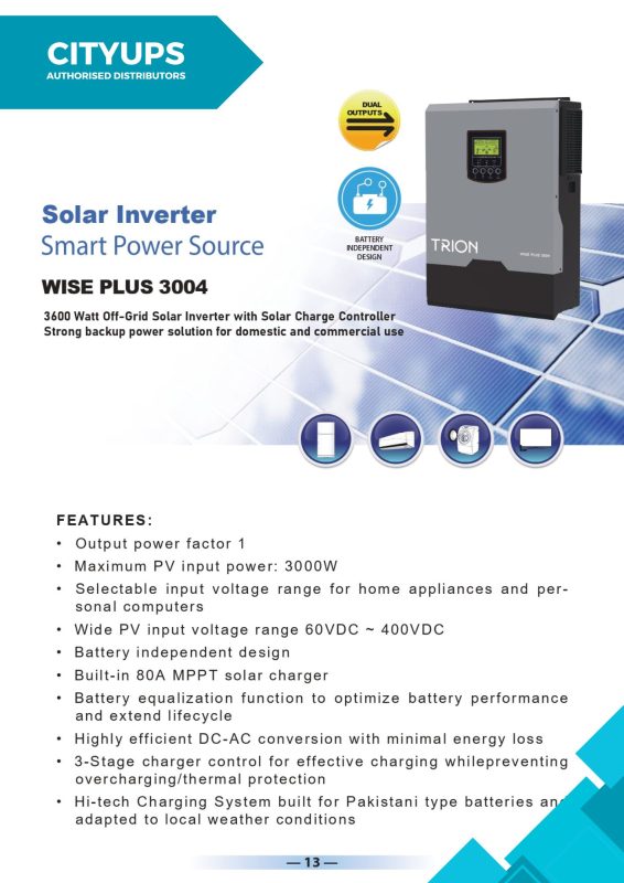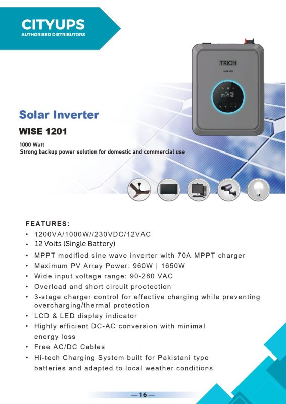 TRION is a leading company with a differentiated portfolio of solutions for packaged power, diversified generation, electrical control & safety and energy optimization. We are passionately committed to bring uninterruptible and alternate power solutions to the customers that makes their life comfortable and efficient. TRION inverters have Hi-Tech charging system built for Pakistani batteries and adapted to local weather condition.